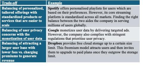 Table II: Examples of trade-offs encountered in the context of crafting the business strategy for a digital innovation